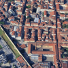 Negozio a Prato (PO) in Via del Melograno. Trattasi di ampio locale a destinazione terziaria posto al piano terra di un fabbricato più ampio, disposto su quattro piani fuori terra oltre a piano interrato, con unità immobiliari a destinazione promiscua residenziale e terziaria. L'unità immobiliare è composta da due ampi vani collegati tra loro da un corridoio: il primo, di forma pressoché quadrata, è situato sul lato nord-est e sud-est del blocco di edificio contraddistinto dalla lettera A, con accesso sia da Via del Melograno sia da Piazza Landini; dal medesimo vano si accede internamente, tramite il corridoio, al secondo ampio vano di forma pressoché trapezoidale. Lungo il corridoio sono presenti antibagno e due servizi igienici.