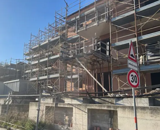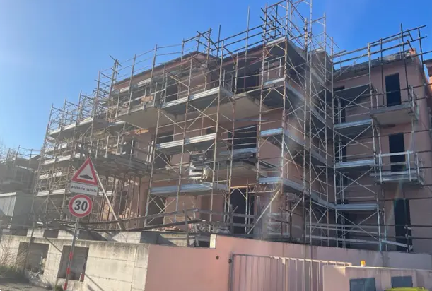 Trattasi di edificio residenziale in fase di realizzazione che sviluppa nove autorimesse e appartamenti, di cui tre al piano terra, tre al primo piano e altri tre al secondo piano.