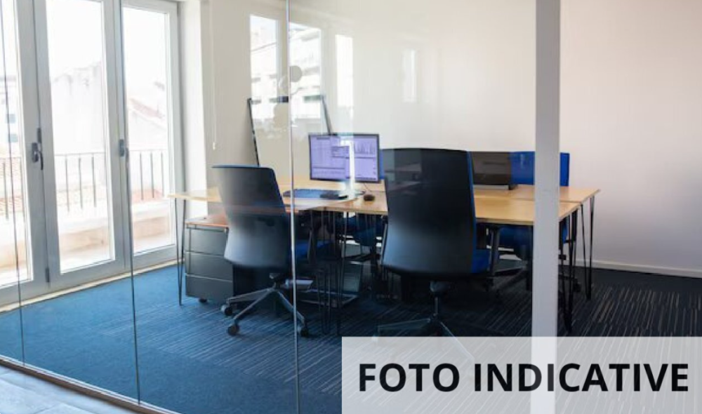 Composto da un locale di ingresso centrale, con due piccoli ripostigli laterali, e una zona di entrata principale in corrispondenza dell'accesso, il quale conduce a due corridoi di distribuzione, l'uno in direzione opposta dell'altro. Lungo i due corridoi si trovano cinque locali adibiti a ufficio, una sala riunioni, un bagno con antibagno, un deposito, due ripostigli, oltre a un secondo disimpegno che conduce a un locale adibito ad archivio, con un bagno e un secondo archivio. Nella zona dell'ingresso, l'ufficio ha fisicamente inglobato parte del bene comune non censibile che consente l'accesso allo stesso; risulta, infatti, presente una porta blindata che divide il bene comune in due parti.