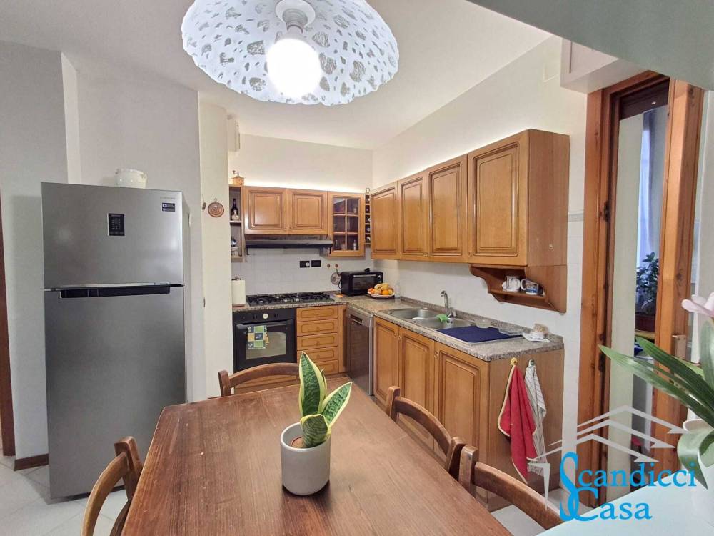 Entrando troviamo la zona giorno in open space con angolo cottura ed un terrazzino adibito a zona lavanderia, proseguendo lungo il corridoio ci troviamo nella zona notte composta da due camere da letto matrimoniali entrambe con accesso al resede di 25 mq, una camera singola e doppi servizi finestrati appena ristrutturati.