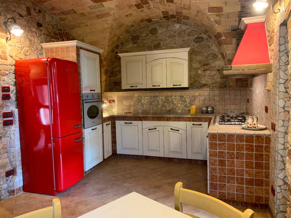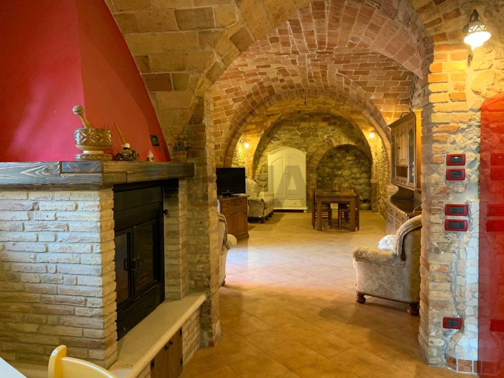 PIANO SEMINTERRATO ingresso autonomo con portico, tipica taverna ristrutturata con volte a botte e pietre a vista, unico vano soggiorno con piccole nicchie, angolo cottura con camino, retrocucina, garage/cantina e servizio;