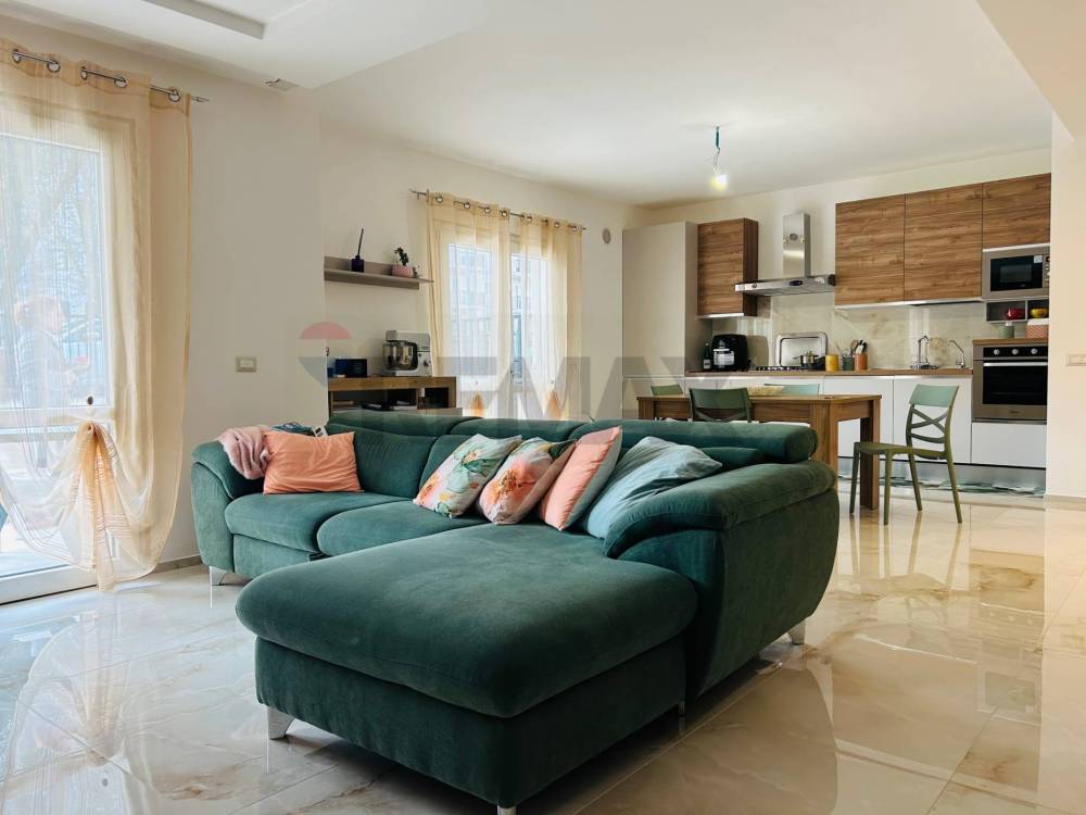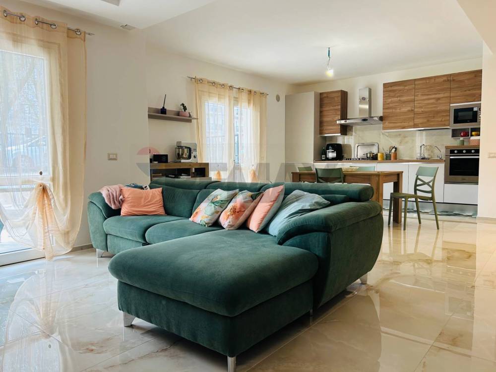 l'immobile misura 113 mq ed è composto da un ampio soggiorno open space con cucina a vista di design, caratterizzato da grandi finestre che inondano di luce naturale l'ambiente, da qui si ha accesso diretto alla veranda e al giardino privato, ideale per cene all'aperto e momenti di relax.