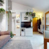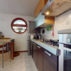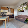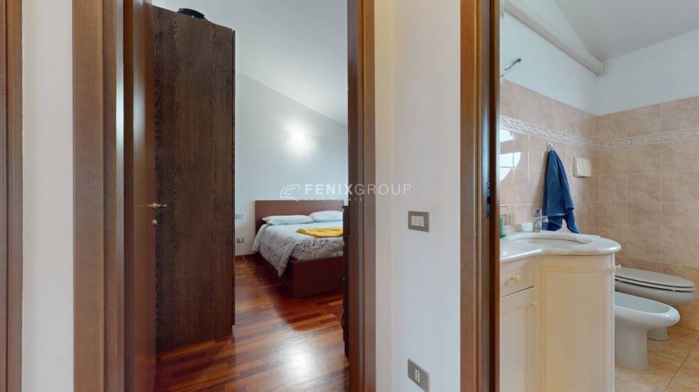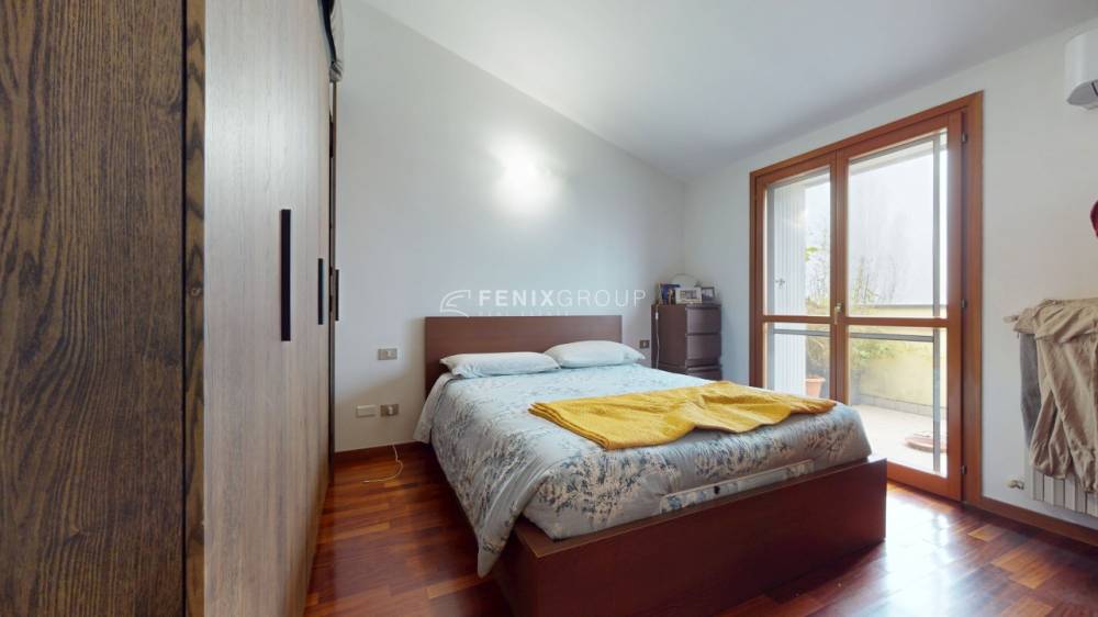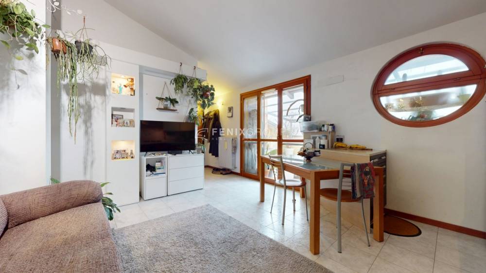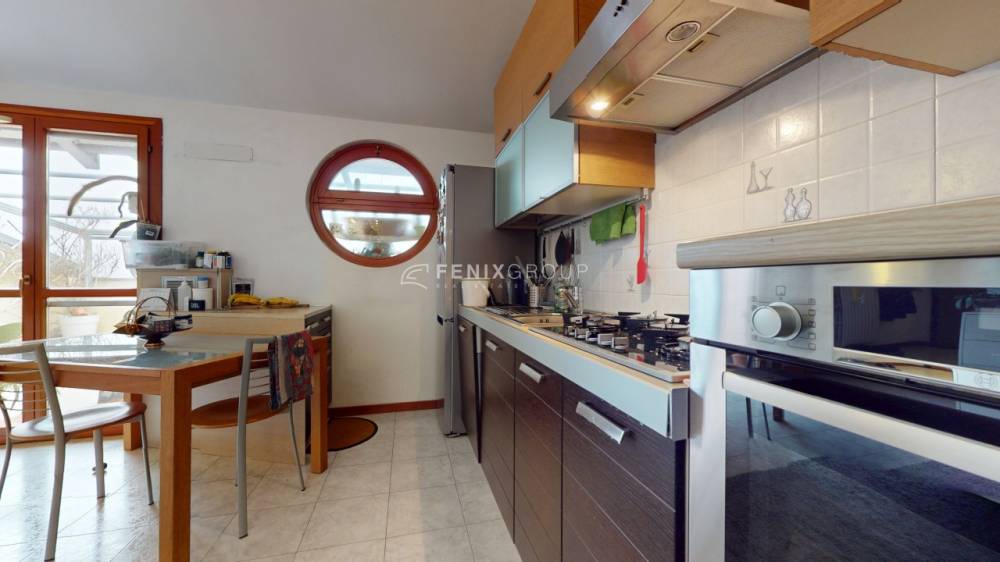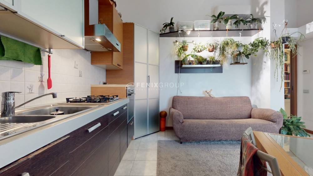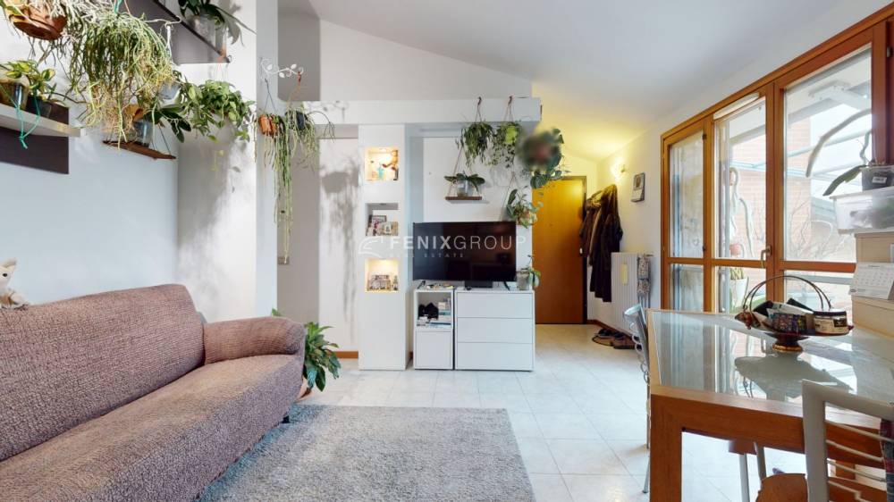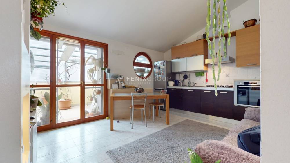 L’ingresso si apre direttamente sul soggiorno con cucina a vista, un ambiente ampio e luminoso, pensato per la vita quotidiana e per accogliere momenti di convivialità. Da qui si accede direttamente al terrazzino, uno spazio esterno vivibile che rappresenta un valore aggiunto, perfetto per rilassarsi all’aria aperta o per pranzi e cene durante la bella stagione, il tutto accompagnato da una gradevole vista sul parco che dona luce, privacy e una sensazione di continuità con il verde.
