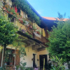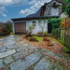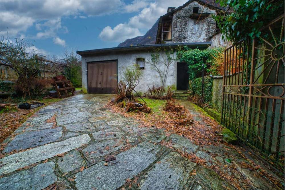 Nel cortile del giardino, lastricato in sasso, è presente un ampio locale in parte adibito a box auto. Complessivamente, il fabbricato misura 250 mq, mentre il giardino circostante ne misura 330.