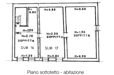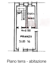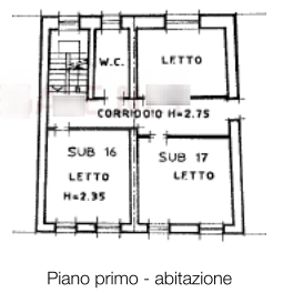 L'immobile è così distribuito: piano terra dove si trova soggiorno, cucina e vano scale interno di collegamento ai piani superiori; piano primo composto da camera da letto con bagno privato, bagno di piano e due camere da letto matrimoniali; piano secondo dove troviamo un sottotetto.