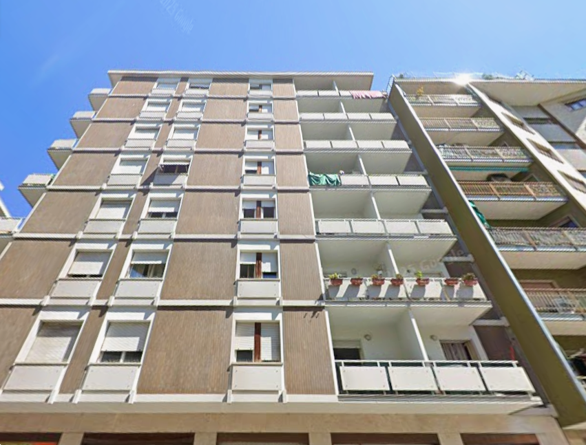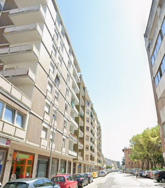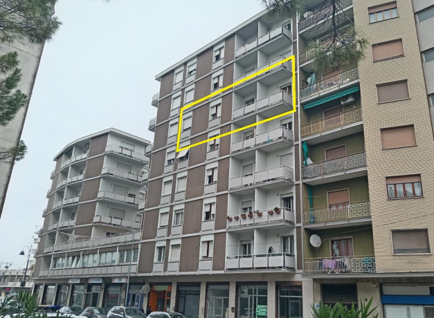 Appartamento posto al piano quinto in un edificio condominiale, dotato di ascensore, ubicato nel comune di Monfalcone (GO) in Via Giuseppe Garibaldi. L'alloggio è composto da due atri, due w.c.-bagno, quattto stanze, delle quali una con un vano, una cucina, un disimpegno, due npostigli e tre poggioli. Per completare l'immobile troviamo una cantina.