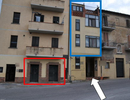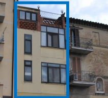 fa parte di un edificio da cielo terra su tre piani, oltre a sottotetto, l'unità è composta al piano terra, da portone di accesso e scala; al piano primo da due camere, cucina, soggiorno, wc e terrazzo; al piano secondo da tre camere, bagno e terrazzo; al piano terzo da soffitta.
