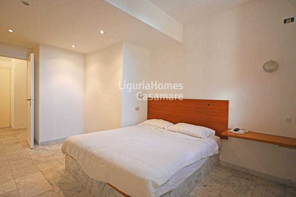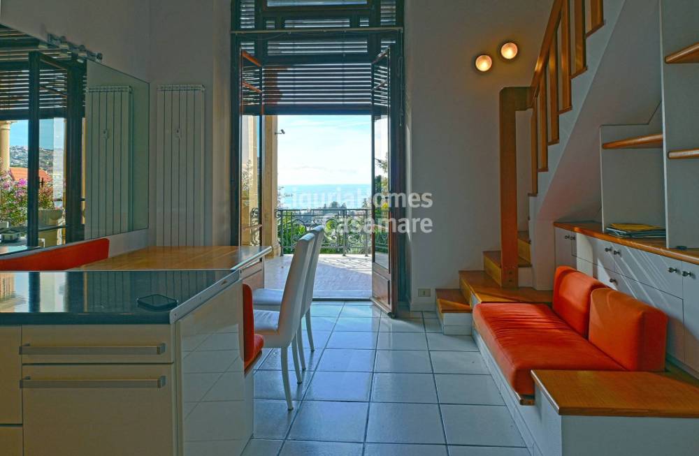 Il piano di arrivo offre la luminosa area soggiorno/pranzo con cucina con accesso al meraviglioso e ampio terrazzo porticato. Gli alti soffitti hanno permesso di creare un soppalco dove troviamo una salotto o eventuale zona letto, ed un bagno. Al piano giardino troviamo un disimpegno con armadi, una camera matrimoniale con bagno en-suite, una ulteriore camera matrimoniale con uscita sul giardino privato e un altro bagno. Una comoda cantina, accessibile anche direttamente dall'appartamento e un garage privato sono inoltre compresi nella vendita di questo esclusivo appartamento a Sanremo.