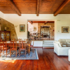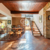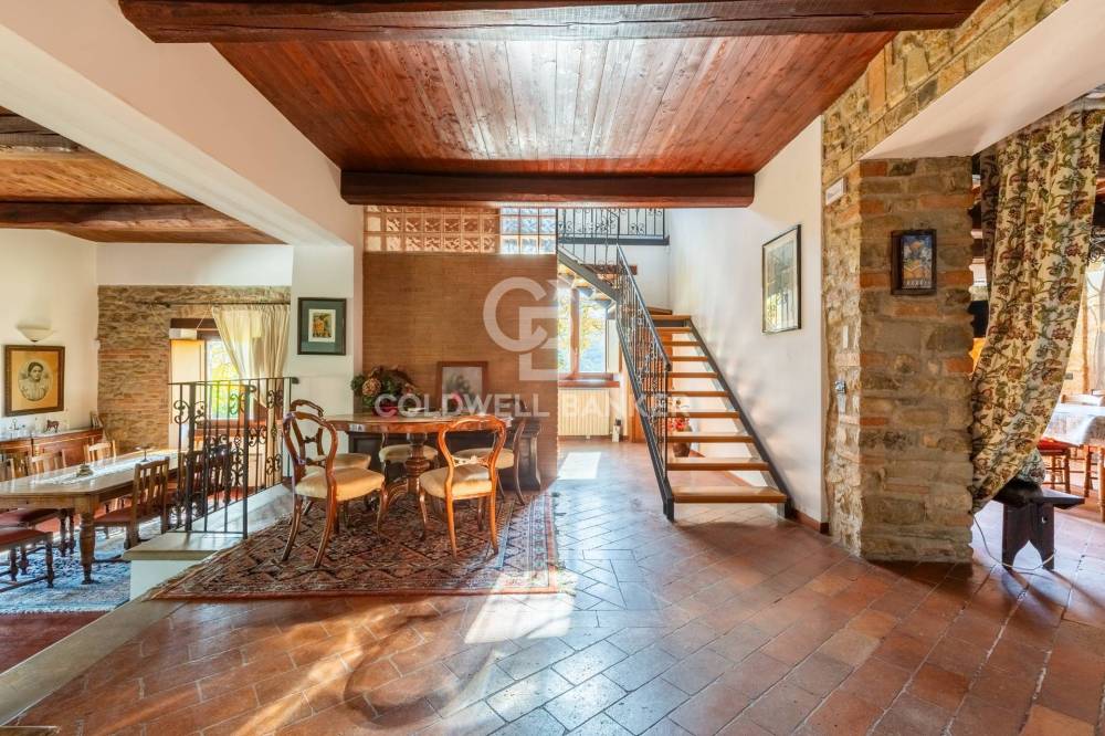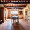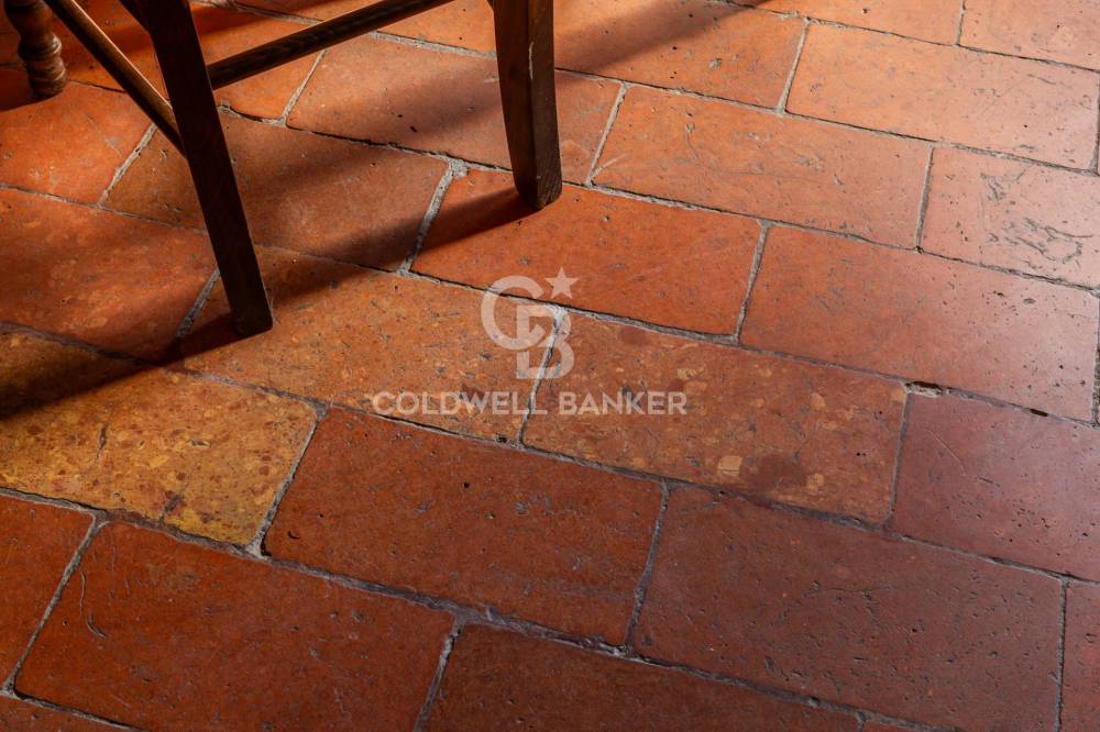 Il casale principale si sviluppa su due livelli. Al piano terra si viene accolti da una luminosa e ariosa zona giorno dove la luce filtra generosa da numerose finestre, valorizzando ogni dettaglio architettonico. La sala da pranzo, scaldata da un camino importante e autentico protagonista dell’ambiente, dialoga armoniosamente con la cucina adiacente, creando un’atmosfera conviviale ideale per momenti di condivisione e vita quotidiana. Un comodo ripostiglio e un bagno di servizio completano il livello, garantendo praticità senza rinunciare al carattere.