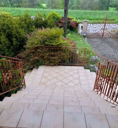 Il piano terra della prima casa di 188,00 mq e 11 vani è composto da cantina, deposito uso ufficio, bagno e ripostiglio uso taverna. Al primo piano c'è una cucina, soggiorno, due bagni, due camere e due terrazze. Al secondo piano ci sono due locali ad uso camera in sottotetto, due bagni, ripostiglio; locale di pertinenza: legnaia e ripostiglio. È presente anche un garage di 40 mq.
