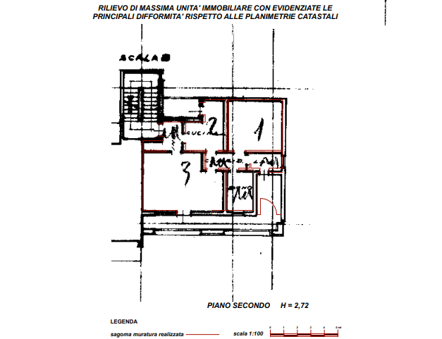 L'unità si trova al secondo piano di una palazzina di quattro piani fuori terra, con ingresso tramite la scala condominiale.
