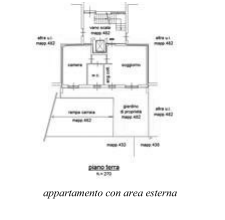 letto, servizio igienico finestrato e area esterna pavimentata.