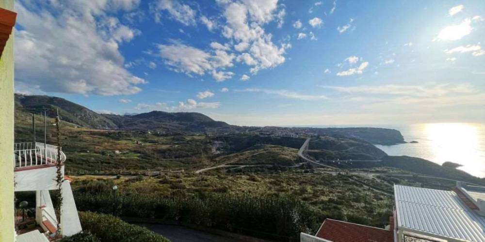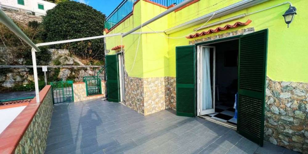 Al piano d'ingresso, troviamo un luminoso soggiorno con angolo cottura, un ambiente accogliente e perfetto per vivere la zona giorno in piena comodità. Da qui si accede a un ampio terrazzo di oltre 20 mq, con una vista panoramica sul paesaggio circostante, che permette di godere della bellezza del mare e delle montagne, creando l'atmosfera ideale per rilassarsi o intrattenere gli ospiti all'aperto.