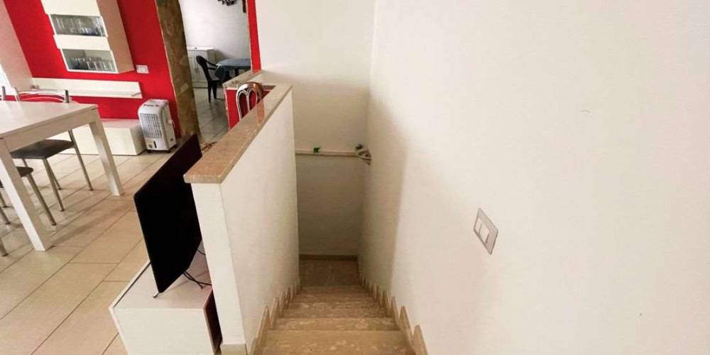 Salendo al primo piano, l'appartamento si apre su un grande salone luminoso, che rappresenta il cuore della casa, perfetto per accogliere amici e familiari. La cucina abitabile è spaziosa, ideale per preparare i pasti in tranquillità. Il piano è arricchito da un terrazzo panoramico che offre una vista mozzafiato sul paesaggio circostante e sul mare, rendendo l'ambiente ancora più accogliente e rilassante.