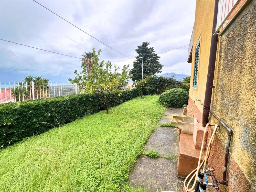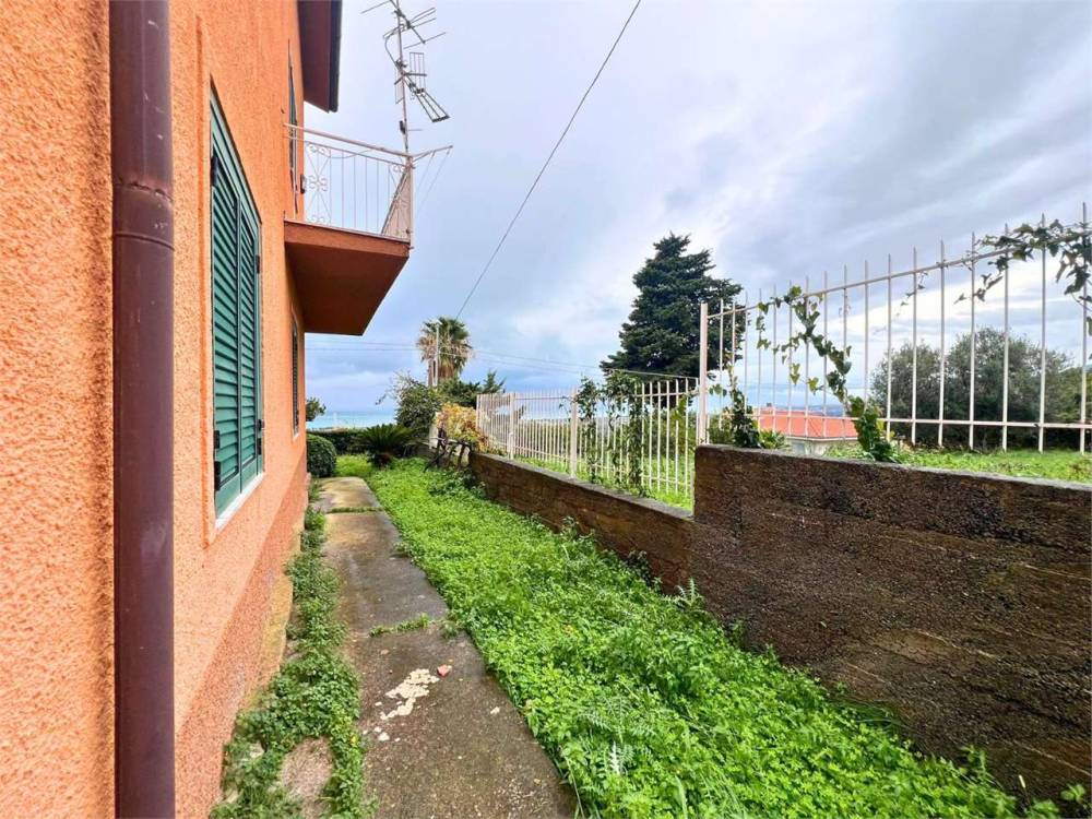 Attraverso una scala esterna si accede al primo piano, anch'esso di circa 100 mq, composto da un comodo ingresso, un luminoso soggiorno con balcone angolare dal quale si puó ammirare una splendida vista sul mare e sulle montagne circostanti, cucina abitabile con finestra panoramica, camera matrimoniale e bagno. Dal soggiorno, una scala in legno conduce al livello superiore.