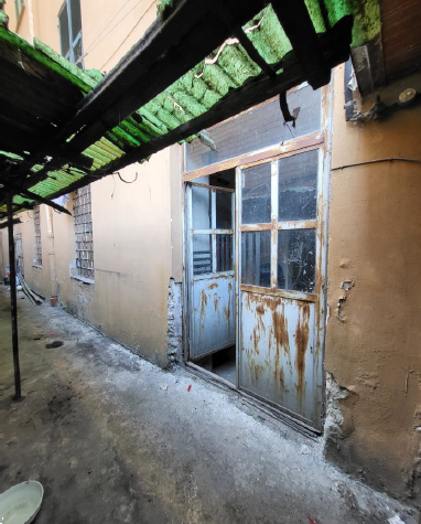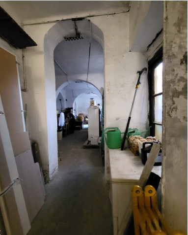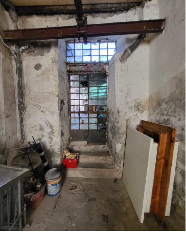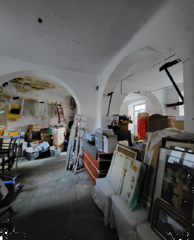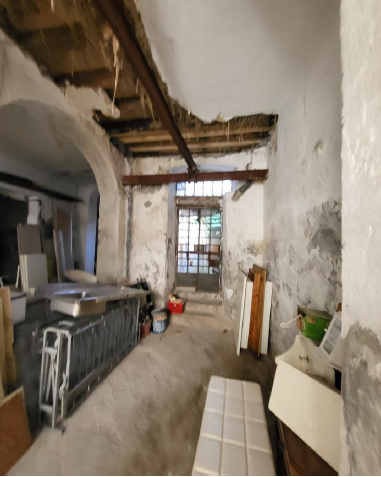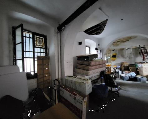 Il laboratorio, luminoso e di forma abbastanza regolare, ha varie finestre e porte finestre che permettono di accedere al cortile adiacente dotato di piccolo locale igienico e tettoia.