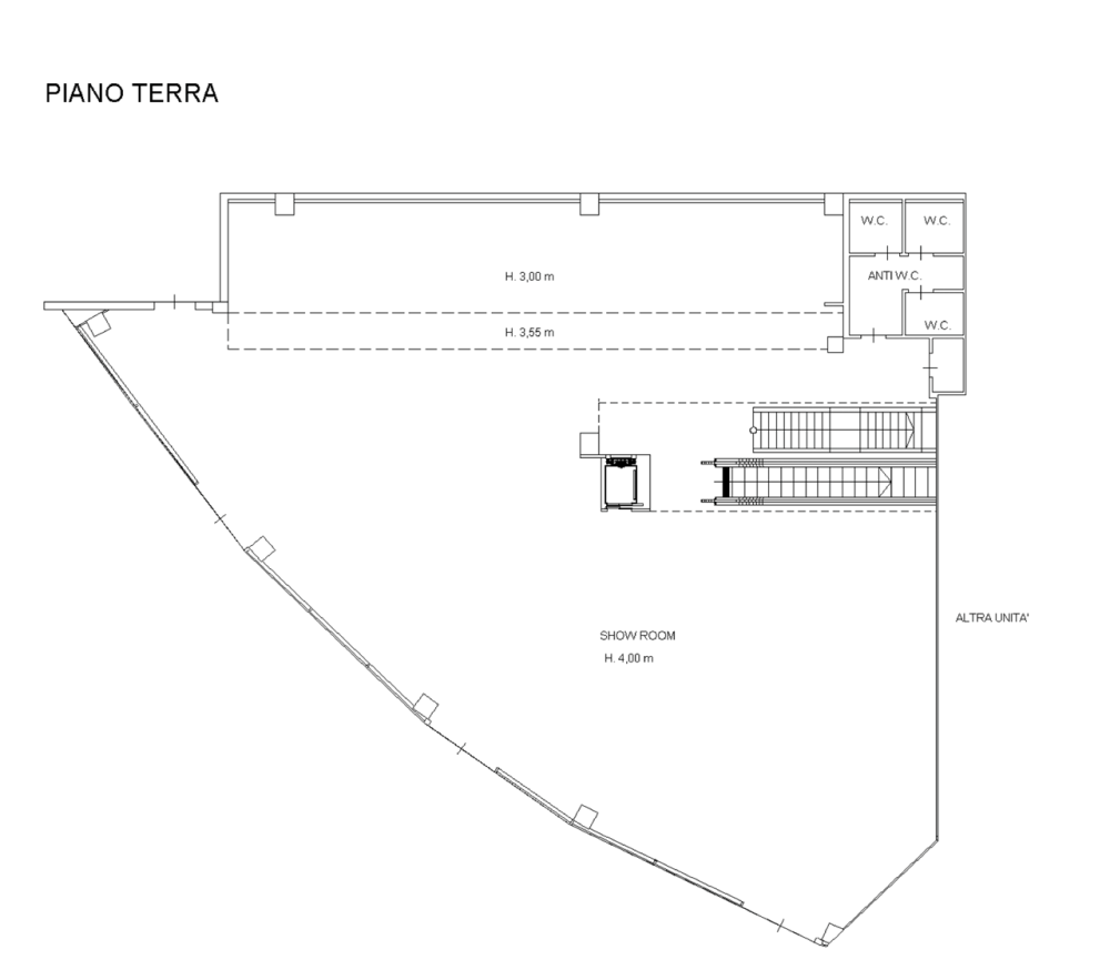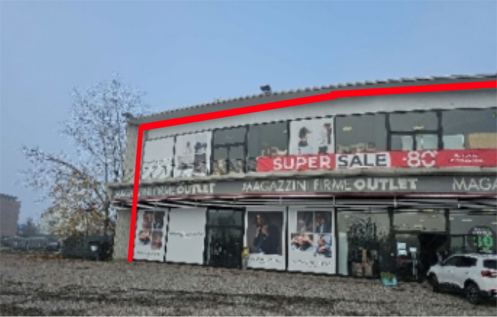 Locale commerciale su due piani con magazzino situato a Monselice (PD) in via Silvio Travaglia, per una superficie commerciale complessiva di 1.352 metri quadri.