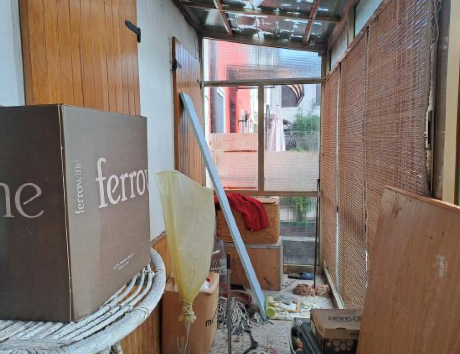 L'autorimessa, realizzata in un fabbricato indipendente rispetto alla sopra descritta abitazione e ad essa prospiciente, è composta da un vano destinato a garage e da due ripostigli di cui il maggiore utilizzato come taverna; grazie ad una scala di accesso esterna all'unità, è possibile raggiungere la copertura del fabbricato, destinata a terrazza e, da qui, una porzione di area scoperta esclusiva.L'accesso agli immobili in oggetto avviene attraverso la corte di proprietà di terzi.