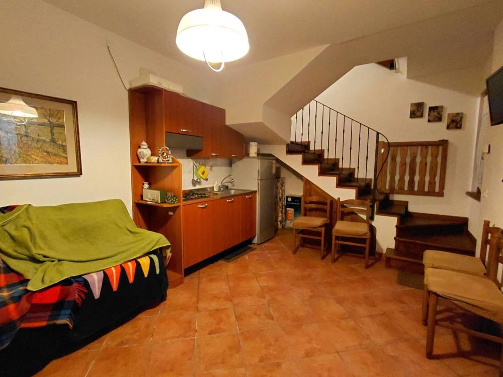 Lingresso al piano terra conduce alla zona giorno, accogliente e funzionale, soggiorno con cucina a vista. Salendo al primo piano troviamo la zona notte, composta da una camera matrimoniale, un comodo disimpegno e un bagno finestrato di generose dimensioni, allinterno del quale è ricavato un pratico angolo lavanderia dedicato a lavatrice e asciugatrice.