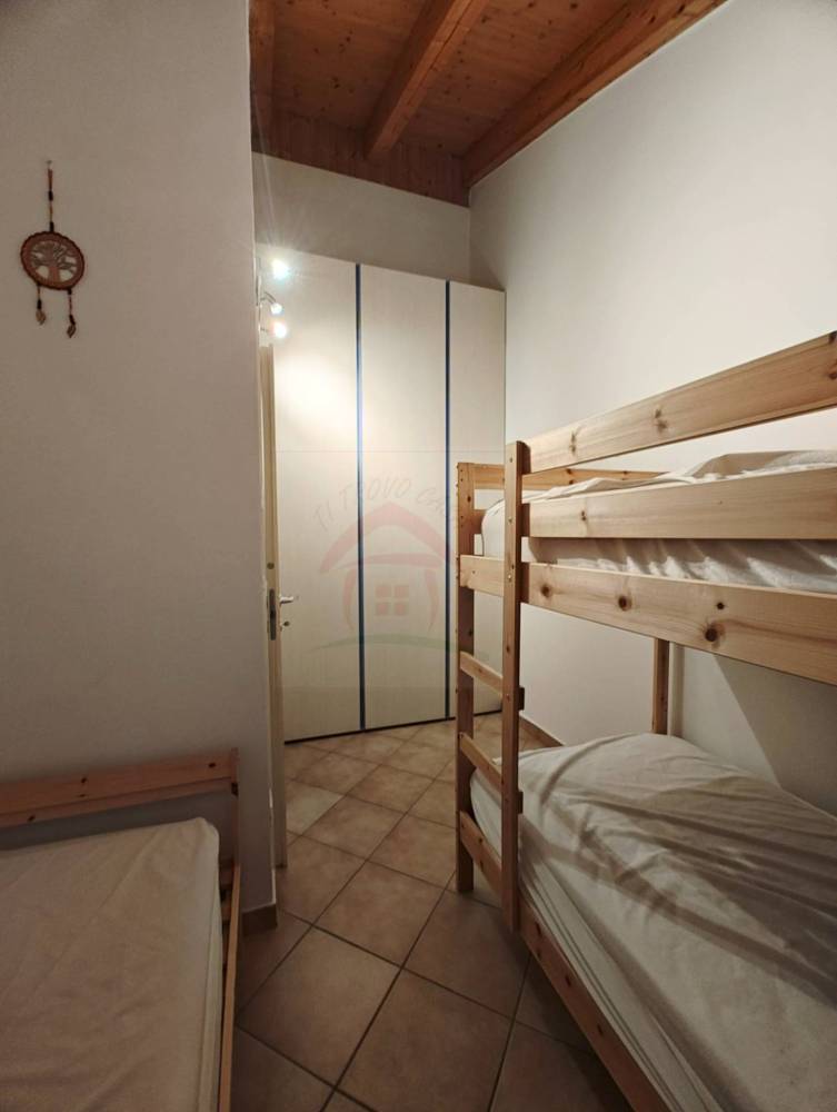 Entrando nell'immobile ci si ritrova nel soggiorno con accesso al balcone esposto a sud, bagno di servizio, cucina abitabile con esposizione a est. Salendo al livello superiore si incontra una prima stanza, il bagno principale finestrato dotato di box doccia, una seconda stanza più ampia con balcone esclusivo rivolto a sud.