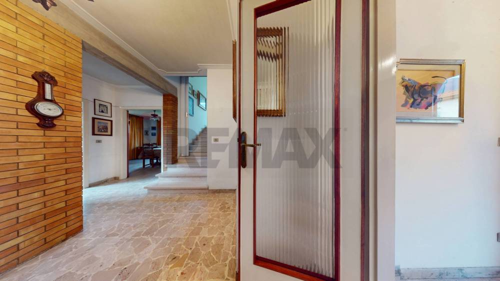 Nel grande giardino è posizionato un Box in lamiera per ulteriore rimessa auto.L'accesso alla villa si ha tramite due cancelli carrabili e uno pedonale.