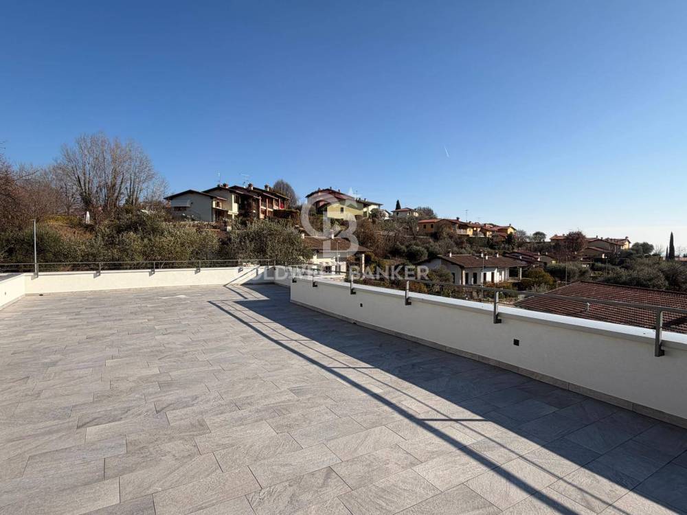 L'ingresso si apre su una zona living con cucina a vista e vetrate con vista sul giardino e sugli ulivi; la zona notte è composta da tre camere da letto e tre bagni. Al piano superiore troviamo una meravigliosa terrazza esposta a sud, con una incantevole vista panoramica, con lo scorcio del Lago di Garda sullo sfondo.