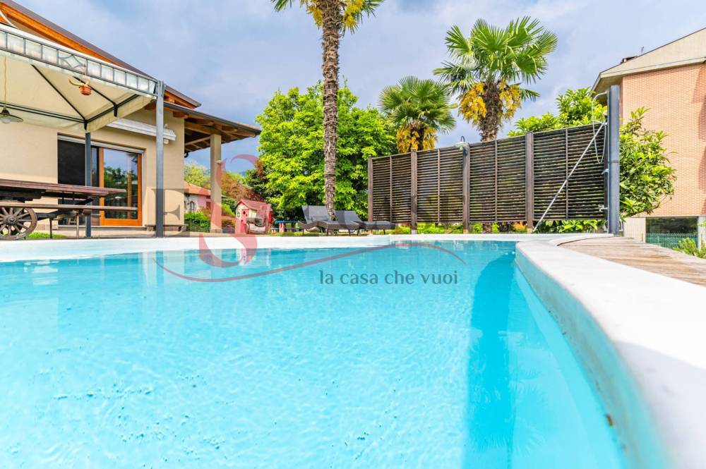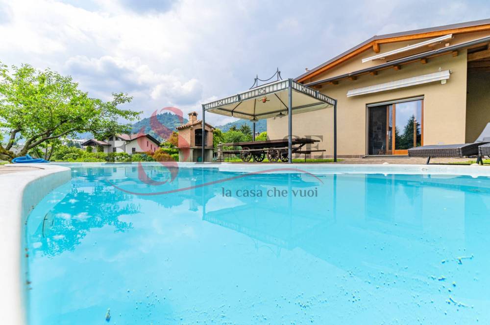 Nembro, in villa trifamiliare, disponiamo di lussuoso pentalocale su due livelli con piscina.
