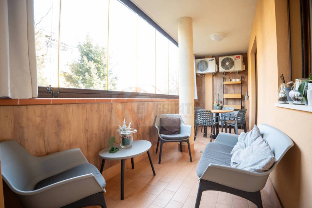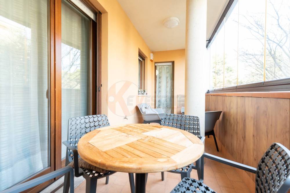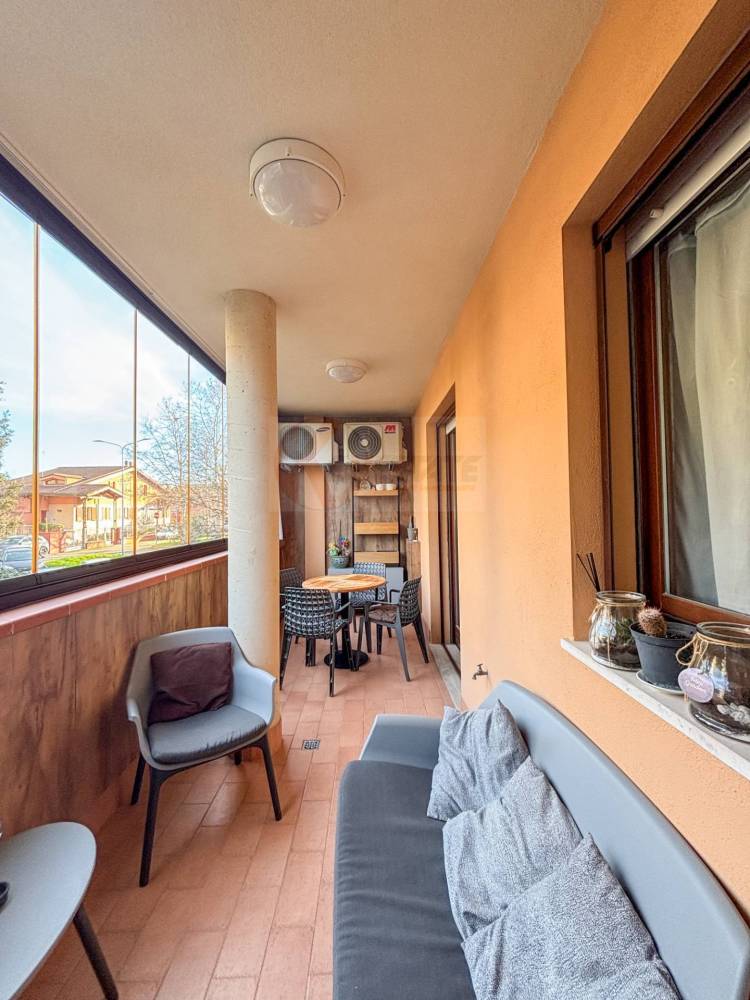 Lingresso ti accoglie direttamente nella sala ampia e luminosa, uno spazio che invita a rallentare e a sentirti subito a casa. Da qui accedi al terrazzo vivibile, chiuso con vetrate retraibili, ideale da vivere tutto lanno, ascoltando il silenzio del quartiere o lasciando entrare laria nelle giornate più calde.