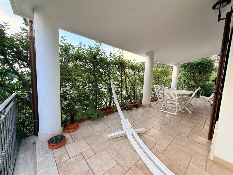 un grande patio coperto di 30mq perfetto per accogliere amici e parenti o semplicemente godersi l'atmosfera marina e un terrazzo di 30mq dalla quale potrai godere una splendida vista panoramica con il mare a farle da sfondo, comodo box auto di 30mq con serranda radiocomandata e locale tecnico con cisterna interrata.