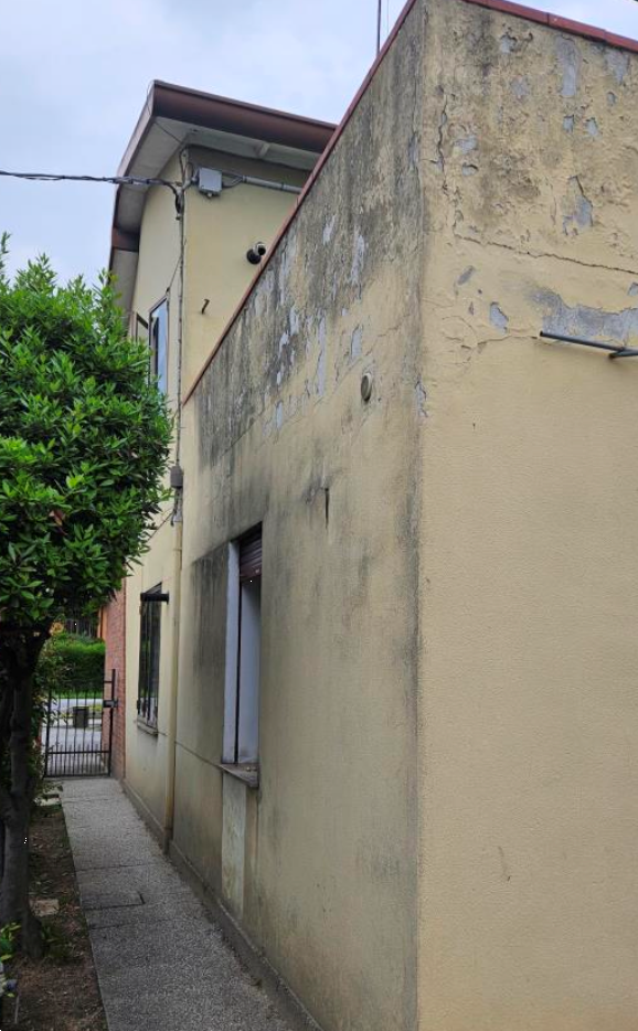 Porzione autonoma di casa su due piani con annessa autorimessa situata a Mirano (VE) in via A. Pacinotti, composta al piano terra da un ingresso, un soggiorno, una cucina, un bagno e magazzino con accesso esterno; al piano primo due camere da letto, un bagno, un poggiolo e un'ampia terrazza soleggiata.