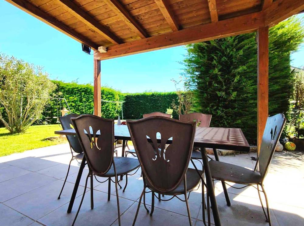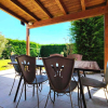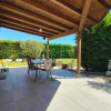 La casa è circondata si tre lati da un bellissimo scoperto privato, in parte pavimentato (con possibilità di parcheggio di un paio di auto) ed una zona antistante l'ingresso adibita a patio protetto da pergolato in legno.