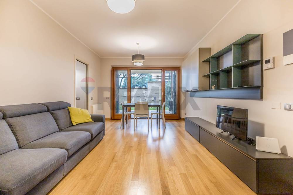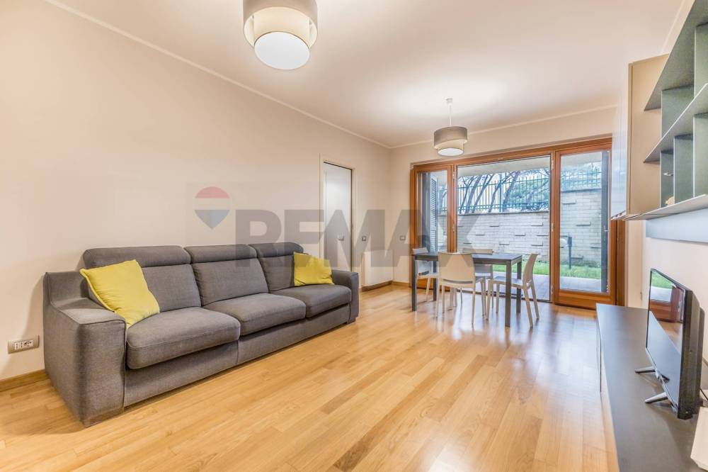 Nei pressi del Centro RAI di Saxa Rubra, nell'esclusivo comprensorio residenziale "Pini di Roma", proponiamo in locazione, all'interno del Condominio "Begonie" (dotato di servizio di portierato full-time) un delizioso appartamento bilocale di circa 45 mq calpestabili, ubicato al piano terra di un villino in cortina di soli 2 piani, di recente costruzione. L'immobile proposto, che si presenta in perfetto stato di manutenzione generale è equipaggiato con portoncino blindato, antenna SAT centralizzata, fibra ottica, videocitofono e climatizzazione invernale/estiva ed è completamente arredato ed attrezzato e dispone, inoltre, di un bellissimo giardino privato di circa 125 mq (di cui circa 45 pavimentati) completo di barbecue in muratura. Internamente, l'appartamento è suddiviso in soggiorno all'americana, disimpegno, cucina semi abitabile, bagno con finestra e doccia walk-in ed una camera matrimoniale. Tutti gli ambienti della casa hanno accesso diretto al giardino. Completano la proprietà proposta in locazione un box auto di 20 mq ed una comoda ed asciutta cantina, entrambi accessibili direttamente tramite ascensore.