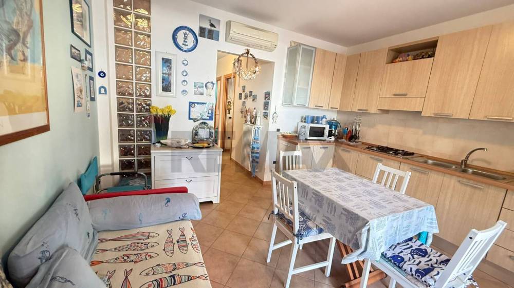 Lingresso conduce a un ampio e luminoso soggiorno, ambiente accogliente e funzionale, collegato a una cucina abitabile completamente arredata, dotata di tutti i comfort.