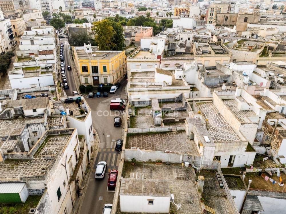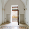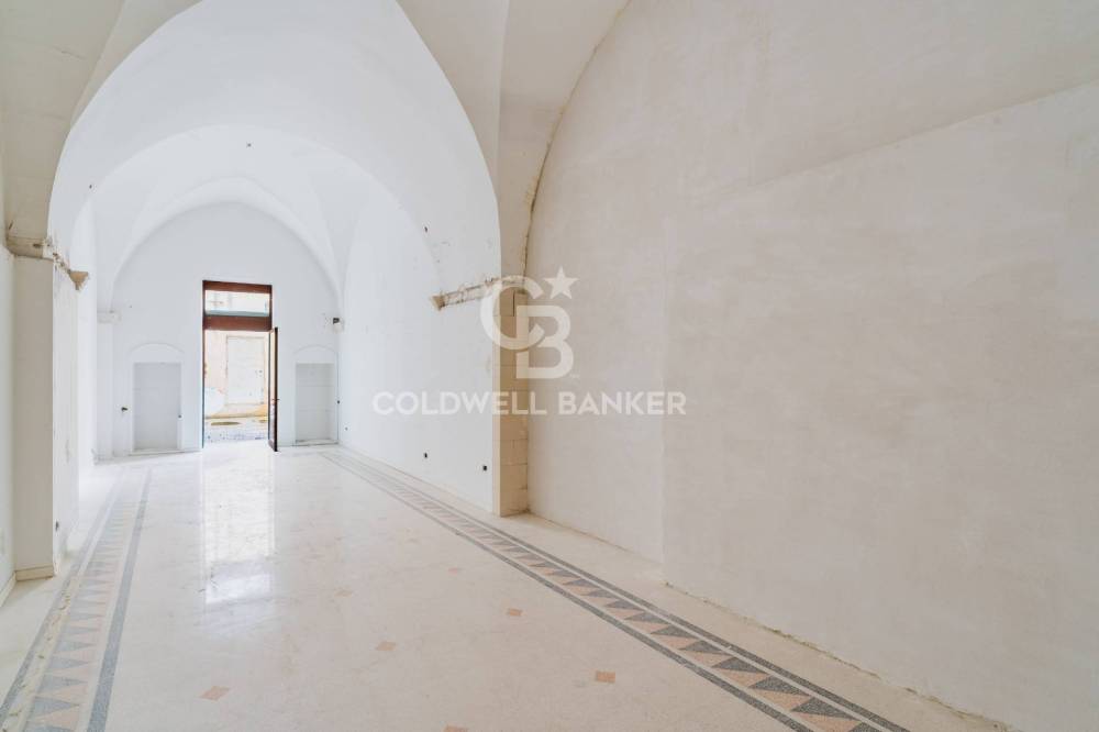 L’immobile si sviluppa su una superficie di circa 67 mq, con una geometria regolare impreziosita da due campate con volte a stella che raggiungono un’altezza di 4,65 metri, elemento architettonico di grande fascino e prestigio. Le finiture in pietra leccese e lo storico pavimento in marmette di granigliato, arricchito da passepartout a motivi geometrici, conferiscono al locale un carattere autentico ed elegante.