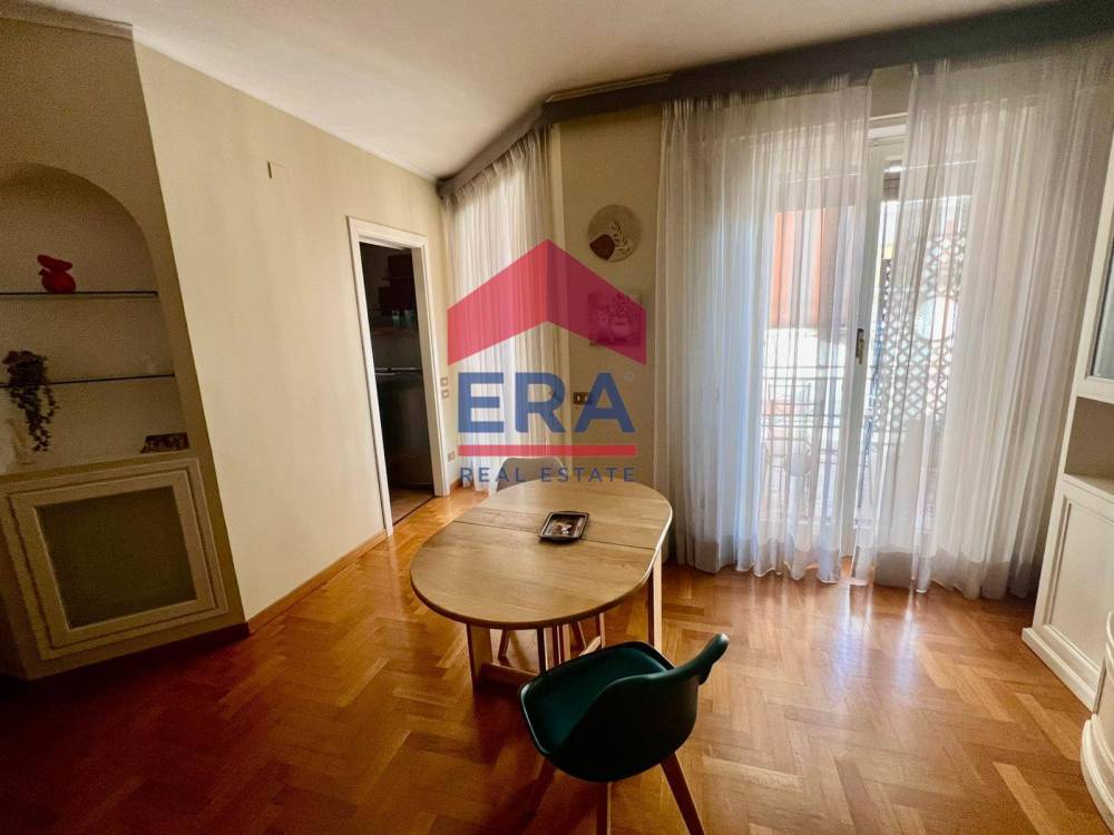 L'appartamento è composto da un ampio soggiorno con boiserie in legno bianco, cucinotto, camera da letto, corridoio con pratico armadio a muro, bagno e balcone abitabile.