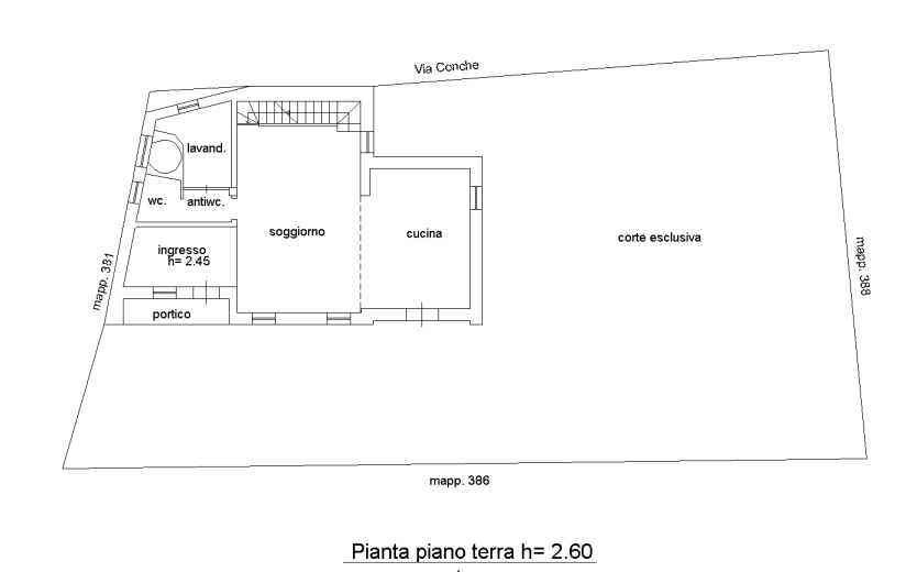 Casa ad Arzignano (VI) in Via Conche, abitazione unifamiliare con area scoperta esclusiva e accesso dalla corte comune collegata alla pubblica via. L'unità è composta al piano terra da portico e ingresso, soggiorno centrale, cucina e zona pranzo open space, antibagno, servizio igienico e lavanderia. Al piano primo si trovano un disimpegno centrale, un servizio igienico, due camere da letto e una camera padronale con bagno privato. Completa la proprietà un ripostiglio al piano interrato.