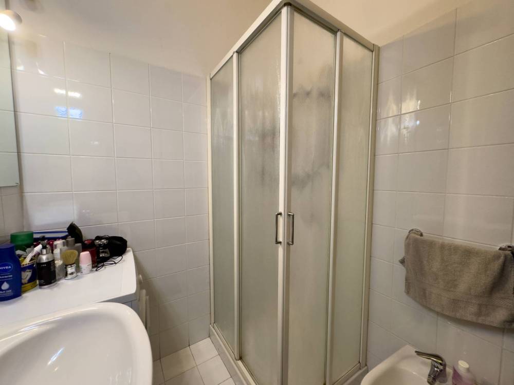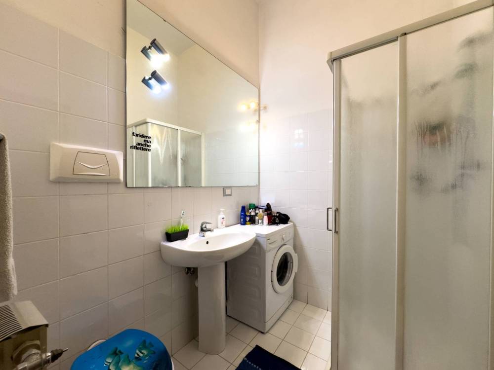 Procedendo nella zona notte si trova il servizio completo di doccia e la camera da letto matrimoniale, spaziosa e dalla forma regolare, ideale per creare il tuo rifugio personale.