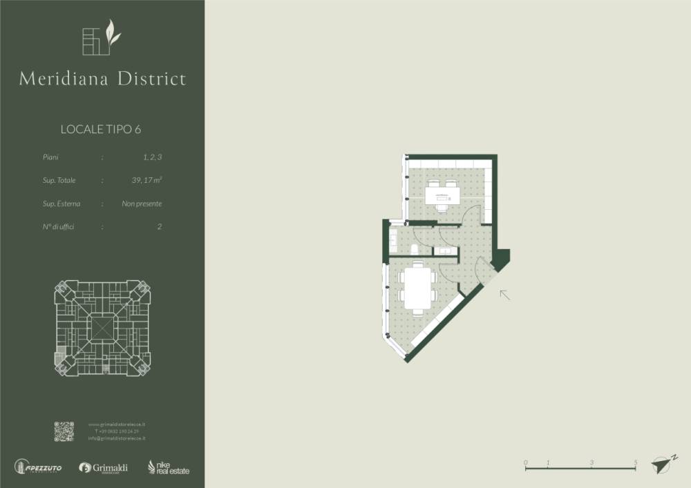 GRIMALDI STORE LECCE Vico dei Fieschi 16, 73100 Lecce MERIDIANA DISTRICT – Il futuro del lavoro ha preso forma. Sta nascendo un nuovo ed esclusivo centro polifunzionale pensato per chi lavora, vive e si prende cura di sé. Meridiana District sarà molto più di un luogo di lavoro: sarà uno spazio moderno, efficiente, circondato dal verde e costruito per il benessere quotidiano. Uffici di nuova generazione, ristoranti, palestre, asili nido, attività commerciali: tutto in un unico contesto progettato per offrire comfort, servizi e qualità della vita a professionisti e aziende. Il cantiere è attivo e guarda al futuro: accanto al Meridiana District sorgerà un grande parco urbano di 15.000 mq, a pochi passi dai principali snodi stradali della città, in una posizione strategica vicina al complesso ospedaliero “Vito Fazzi”. Meridiana District sarà il primo centro in cui lavoro, servizi e natura si fondono per creare un nuovo stile di vita lavorativa, in un circolo virtuoso di crescita del valore. Più utenti, più interazioni, più esternalità di rete. Un nuovo modo di abitare il tempo. Una nuova destinazione urbana che integra commercio, servizi, uffici, spazi sociali. STUDIO 6 - PIANO PRIMO (Disponibile con lo stesso taglio anche al 2° e 3° piano) Studio direzionale di 40 mq commerciali, caratterizzato da spazi funzionali e ben distribuiti. L’immobile è composto da ingresso, due luminosi uffici e servizio igienico, ideale per professionisti e aziende che cercano comfort e operatività in un contesto moderno. Richiesta informazioni ai contatti che seguono: GRIMALDI STORE LECCE 0832 1902429 393 9035134 info@grimaldistorelecce.it