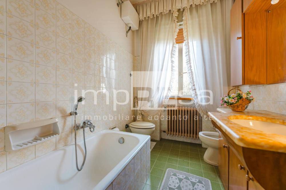 al piano primo, collegato internamente da una scala, grande sala pranzo con cucinotto separato per un totale di mq. 20, ampio soggiorno di mq. 14, entrambi con affaccio ed accesso su un terrazzo lungo tutto il lato Ovest, due grandi camere matrimoniali (18 mq. e 16 mq.) una camera singola e un bagno con vasca