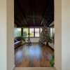 Un disimpegno di ingresso apre su una luminosa zona giorno con cucina a vista, caminetto e angolo relax; sullo stesso livello, la prima zona notte si compone di una camera matrimoniale, di uno studio e di un servizio con box doccia.