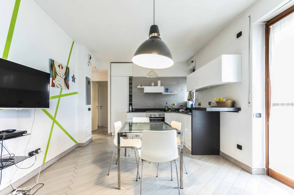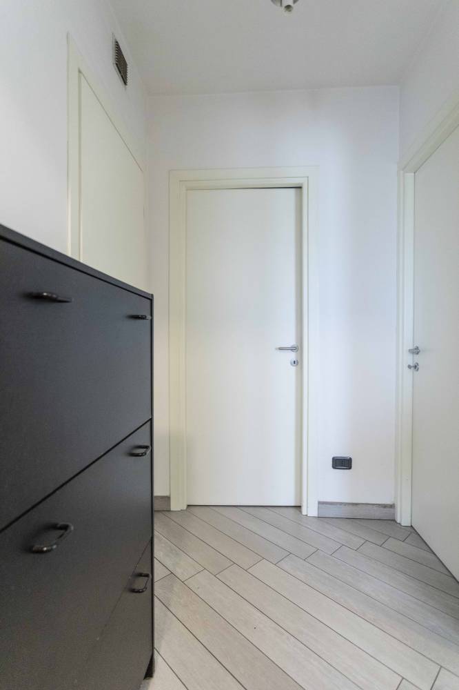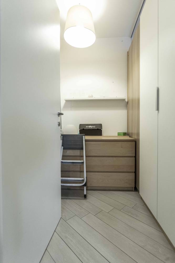 L'appartamento, completamente arredato, è composto da ingresso, cucina living, disimpegno, due camere, bagno finestrato e cabina armadio.