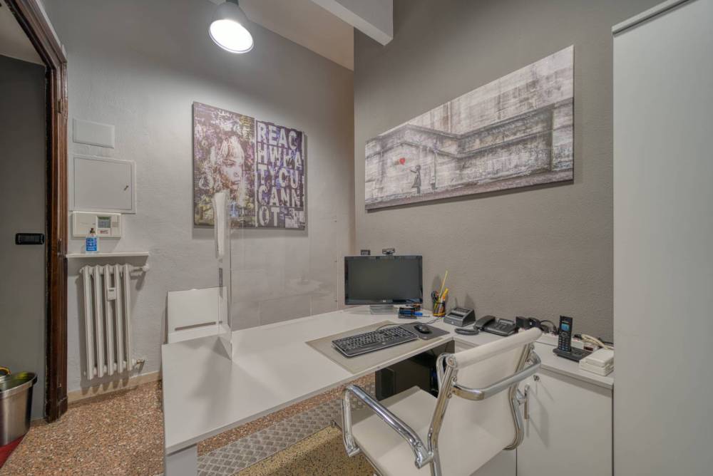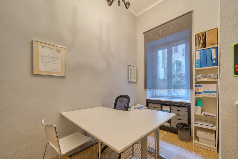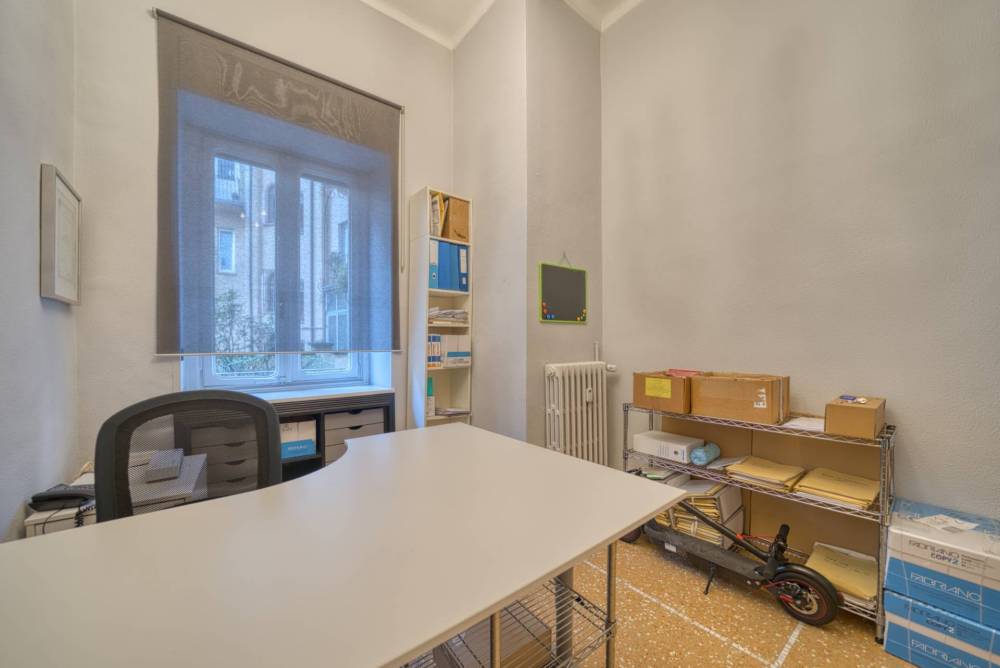 L'ufficio verrà locato parzialmente arredato, verrà lasciata la cucina, la lavatrice, la libreria (nella seconda stanza sulla destra) ed i lampadari (nella stanza con i soffitti a cassettoni).