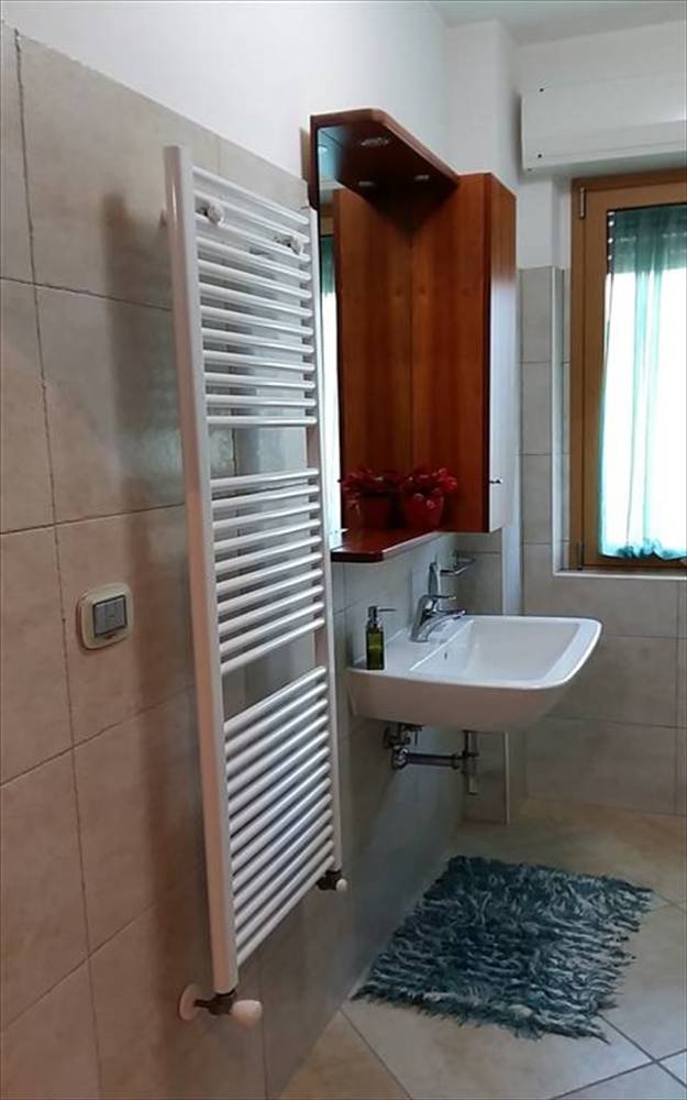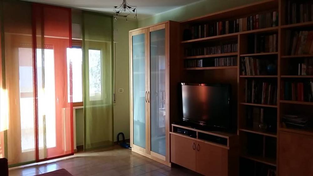 In Via degli Ernici 13, appartamento al primo piano di circa mq.135 di un fabbricato per civile abitazione dislocato su quattro piani, composto da ingresso, cucina, pranzo, soggiorno, disimpegno, tre camere, ripostiglio, bagno e wc, due balconi con affaccio su corte condominiale, con annesso locale garage di circa mq.35.
