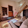 Dalla zona living una solida scala in legno porta al livello superiore, dove si sviluppa una mansarda soppalcata concepita in stile loft. Questo ambiente versatile, perfetto come seconda camera matrimoniale o area relax, è servito da un bagno dedicato e arricchito da armadi a muro.
