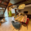 Il loft è composto da: ingresso al piano 1° su ampia zona giorno composta da sala e cucina a vista con isola (inclusa nel prezzo), zona soggiorno (sfruttabile come altra camera), anti bagno e bagno con doccia walk in. Piano superiore al quale si accede tramite una scala in ferro composto da 2 camere da letto, terrazzino, ampio bagno con vasca, cabina armadi e balcone.