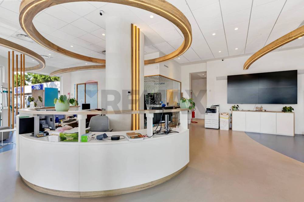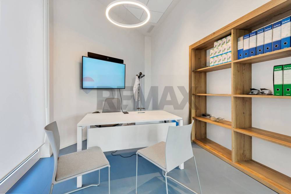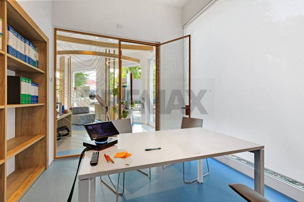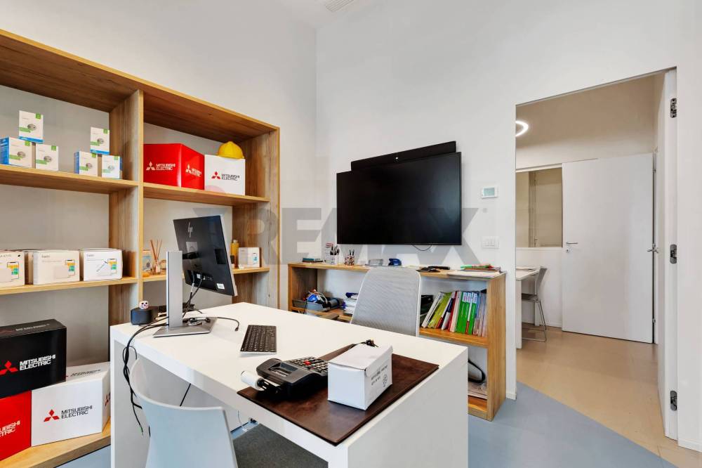 - piano terra : ampio openspace luminoso con uffici suddivisi da pareti mobili e due bagni