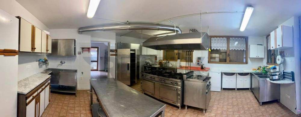 per sodisfare tutti i pasti richiesti a pieno regime, dispensa, deposito ,cappella e sei bagni e altre due