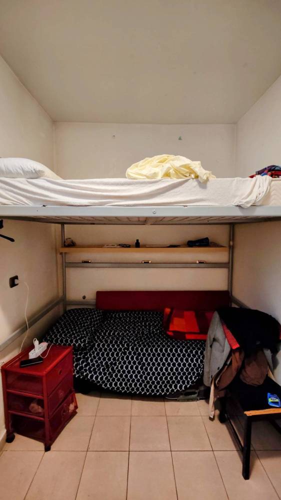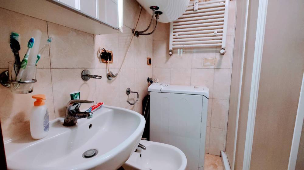 l'immobile è composto da: al p.t. Soggiorno con cucina, al piano sottostante camera con letto a castello, al piano superiore seconda camera con letto matrimoniale, un bagno.