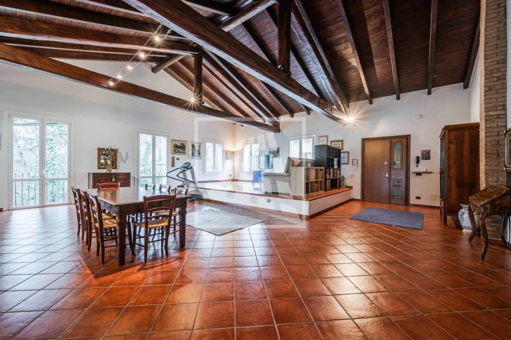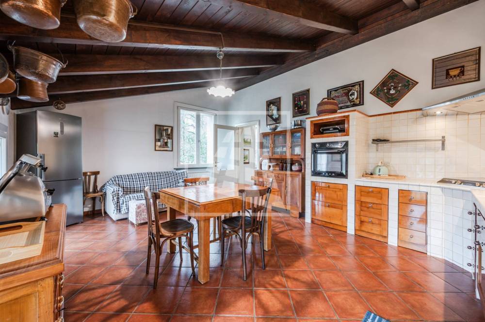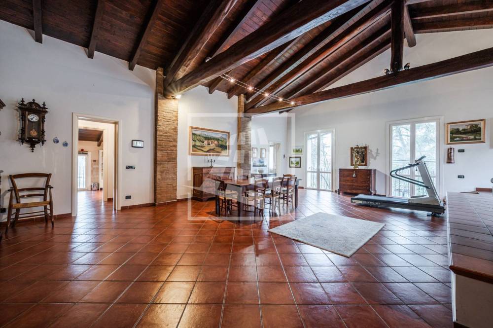 Di pertinenza, al piano terra, la proprietà dispone di una cantina, unautorimessa di 65 mq, un magazzino di 130 mq e un ampio spazio sottotetto utilizzabile come palestra o studio.