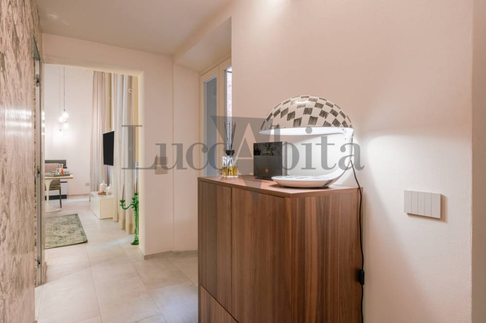 Centro Storico Grazioso Loft in palazzo storico elegantemente ristrutturato di circa 60 mq. con corte privata ed esclusiva di circa 40 mq. facilmente raggiungibile con auto e parcheggio su strada. L' appartamento posto al piano terra è stato completamente ristrutturato nel 2022 con stile moderno e raffinato. Perfetto sia come pied-à-terre che per locazioni turistiche. L’immobile, su due livelli. è composto al piano terra da living con cucina open space, ripostiglio/lavanderia e bagno con doccia walk-in. Al piano superiore, realizzato tramite un soppalco, camera da letto con finestra affacciata sul cortile interno, lungo il lato principale è stato ricavato un ampio armadio a muro e una funzionale postazione di lavoro. La caratteristica principale, oltre alle finiture di pregio, la location ed il design moderno ed attuale, la corte interna privata, uno spazio riservato per zona pranzo o relax. La corte è collegata direttamente al soggiorno ed è accessibile anche tramite un ingresso indipendente, senza dover attraversare l’appartamento. Accessoriato da cantina al piano interrato. Euro 370.000